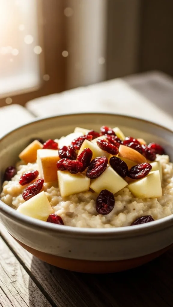 Apple cranberry oatmeal is sweet, tart, and hearty. Fold diced apples and dried cranberries into hot oats. Sweeten lightly with honey or maple syrup. Using dried cranberries keeps this recipe budget-friendly. This oatmeal keeps you full and warm on winter mornings. Optional toppings include nuts or cinnamon. Practical, simple, and satisfying.