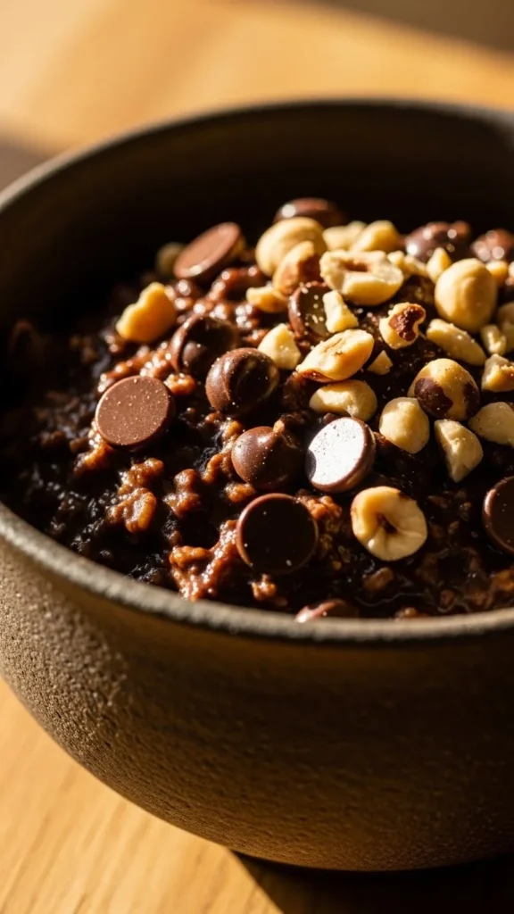 Chocolate hazelnut oatmeal is indulgent and filling. Stir cocoa powder, chocolate chips, and chopped hazelnuts into hot oats. Hazelnuts add protein and texture. Sweeten lightly with honey. Using pantry staples keeps this recipe affordable. This oatmeal is warming and satisfying, perfect for winter mornings. Optional toppings include a drizzle of chocolate or nuts. Simple and practical for a cozy start to the day.