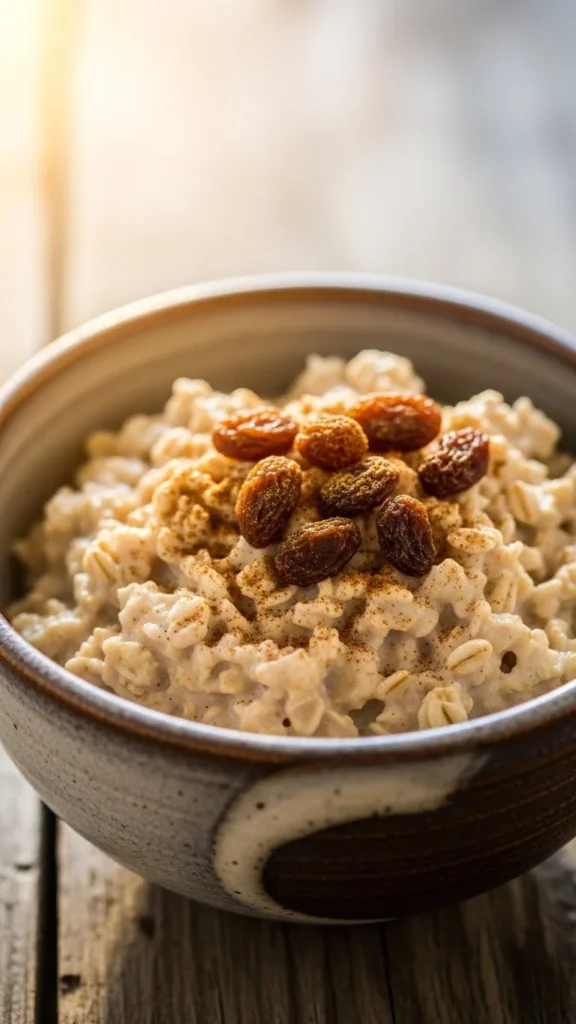 Cinnamon raisin oatmeal is sweet, aromatic, and hearty. Add raisins and cinnamon to hot oats. Sweeten lightly with brown sugar or honey. Raisins are budget-friendly and add natural sweetness. This oatmeal keeps you full for hours. Optional toppings include nuts or a sprinkle of cinnamon sugar. Practical, easy, and perfect for winter mornings.