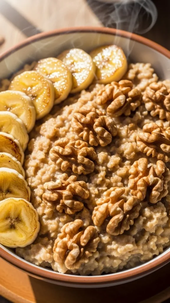 Banana walnut oatmeal is sweet, nutty, and practical. Slice ripe bananas and add to warm oats. Sprinkle chopped walnuts on top. Use brown sugar or honey for additional sweetness. Walnuts add texture and protein, keeping you full longer. Ripe bananas naturally sweeten the dish, saving sugar. Simple, budget-friendly, and satisfying, this oatmeal is perfect for a quick winter breakfast. Serve warm with a splash of milk.