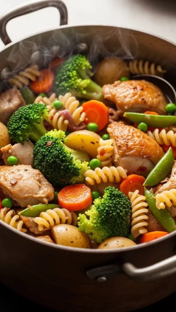 Frozen peas or carrots slide in near the end. Leftover chicken also works, which saves time. This dish stretches easily and reheats well with a splash of water.