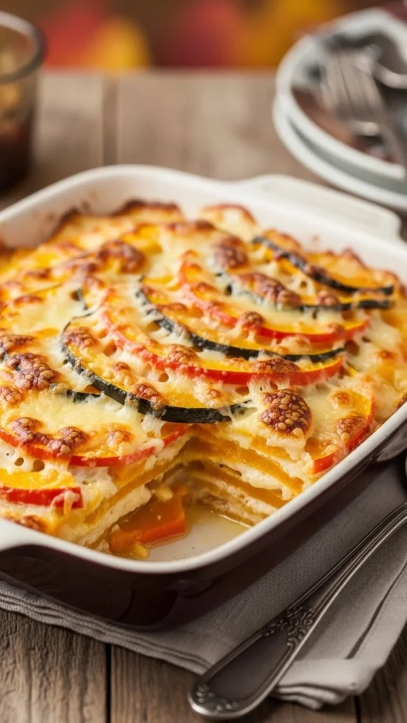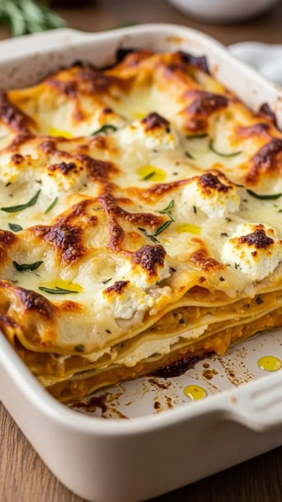 Pumpkin lasagna is creamy and comforting. Layer roasted pumpkin with pasta sheets, cheese, and béchamel sauce. Bake until golden and bubbling. Budget-friendly: use store-brand cheese and seasonal pumpkin. Serve as a main dish. Roasted pumpkin adds depth and richness to lasagna.