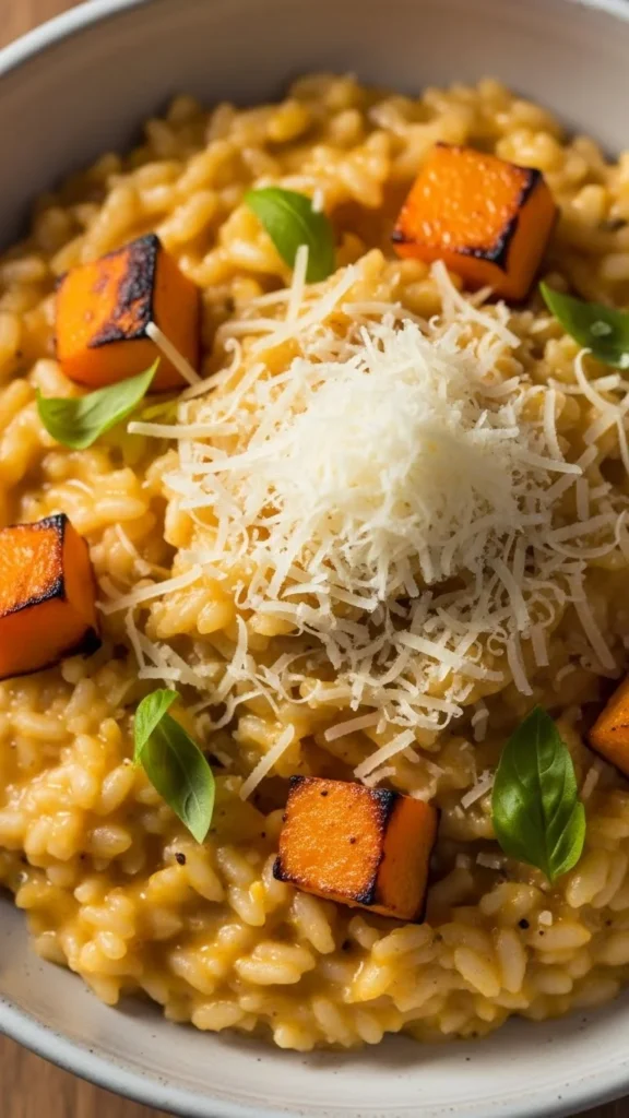 Pumpkin risotto is rich and creamy. Sauté arborio rice with onions and garlic, gradually add broth, and stir in roasted pumpkin cubes. Budget-friendly: use seasonal pumpkin and pantry staples. Serve as a main or side dish. The roasted pumpkin adds depth and sweetness to the creamy risotto.