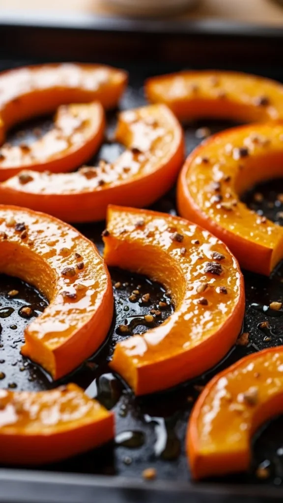 Maple-glazed pumpkin is sweet and earthy. Slice the pumpkin, brush with olive oil and maple syrup, season with salt, and roast until tender. Budget-friendly: use store-brand maple syrup or honey as an alternative. Serve as a side or mix into grain bowls. The glaze creates a glossy finish and enhances natural pumpkin flavors.