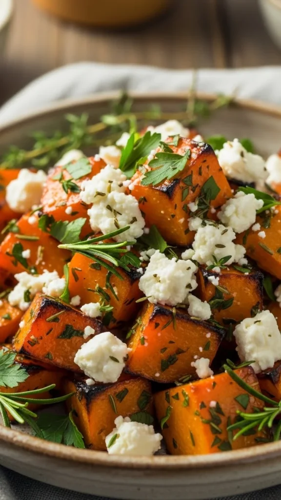 Roasted pumpkin with feta is savory and slightly tangy. Cube pumpkin, roast with olive oil, salt, and pepper. Sprinkle feta and herbs before serving. Budget-friendly: use store-brand feta. Serve as a side or add to salads. Feta balances sweetness.