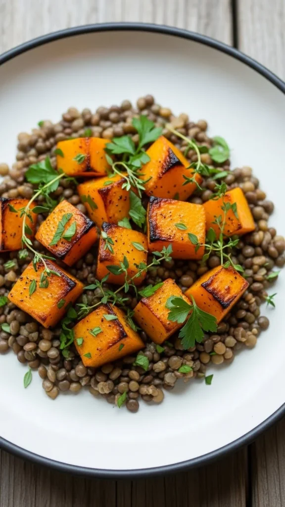 Pumpkin and lentil bowl is hearty and nutritious. Roast pumpkin cubes with olive oil and seasoning. Serve over cooked lentils, drizzle with lemon and olive oil. Budget-friendly: use dried lentils and seasonal pumpkin. Great for lunch or dinner. The combination is filling and flavorful.