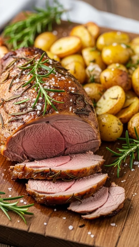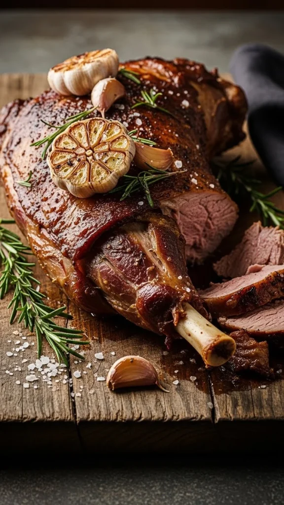 Season lamb with garlic, rosemary, salt, and pepper. Slow roast until tender. Budget-friendly: buy frozen legs for savings. This aromatic roast is perfect for holiday or weekend dinners.