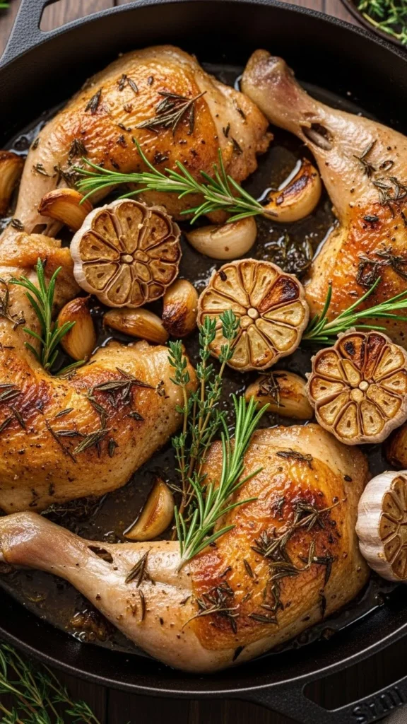 Season chicken legs with garlic and herbs, roast until crispy. Budget-friendly: legs are cheaper than breasts. This simple roast is flavorful and aromatic.