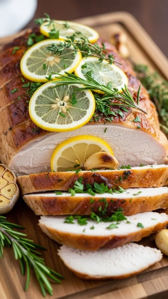 Rub turkey breast with lemon, garlic, and herbs. Roast until golden. Budget-friendly: turkey breast is cheaper than whole birds. This fragrant roast is perfect for small gatherings.