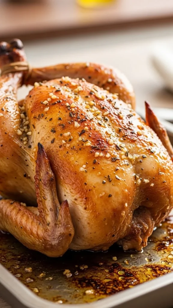 Rub chicken with garlic butter and herbs. Roast until the skin is crispy. Budget-friendly: use whole chickens instead of pre-cut parts. This juicy, flavorful roast is simple yet impressive.