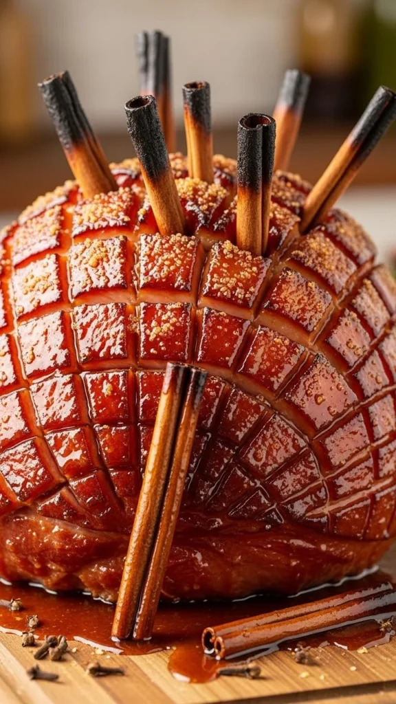 Score ham, glaze with brown sugar and cinnamon, and bake. Budget-friendly: small hams stretch far for a gathering. This sweet, spiced roast is comforting and fragrant.