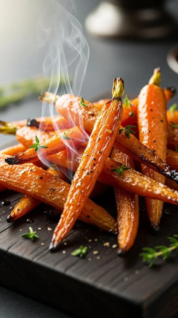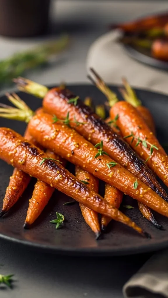 Maple Dijon roasted carrots are earthy and tangy. Toss carrots with olive oil, maple syrup, dijon mustard, salt, and pepper. Roast at 400°F until caramelized. Budget-friendly: use pantry staples. Serve as a side dish or add to grain bowls. The combination of sweet and tangy elevates natural flavors.