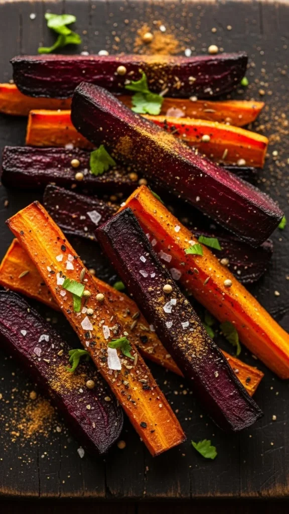 Spiced roasted beets and carrots are warm and earthy. Toss with olive oil, cinnamon, cumin, salt, and pepper. Roast at 400°F for 30 minutes. Budget-friendly: use seasonal produce. Serve as a side or add to salad bowls. Spices complement the natural sweetness.