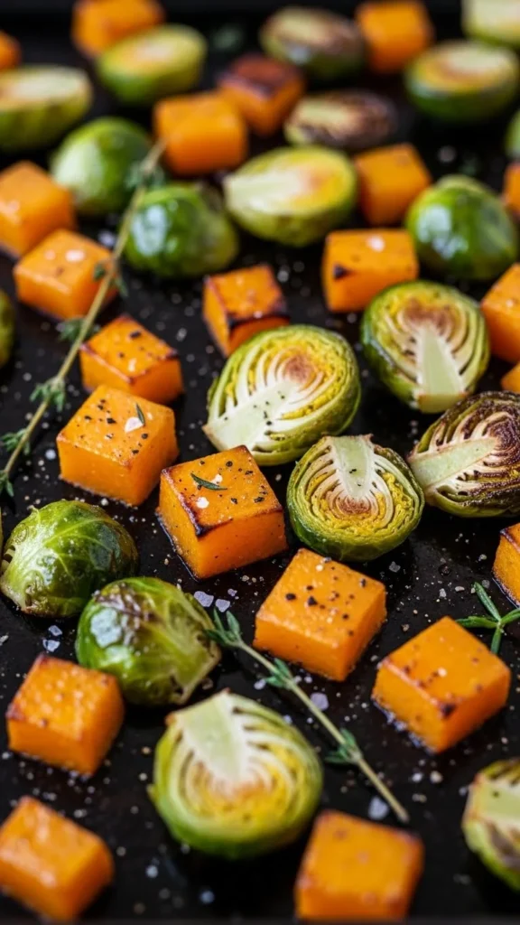 Roasted butternut squash and Brussels sprouts are earthy, sweet, and quick. Toss with olive oil, salt, and pepper. Roast at 400°F until caramelized. Budget-friendly: use frozen vegetables if fresh are unavailable. Serve as a side or add to grain bowls. Roasting brings out the natural sweetness and crunch.