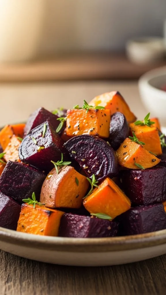 Sweet potato and beet medley is vibrant, earthy, and sweet. Toss cubes with olive oil, salt, pepper, and optional herbs. Roast until tender. Budget-friendly: use seasonal produce. Serve as a side dish or in winter salads. Roasting enhances natural flavors.