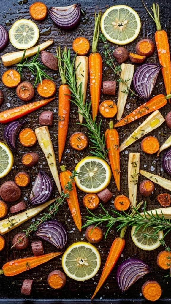Lemon herb roasted vegetables are bright, earthy, and simple. Toss vegetables with olive oil, lemon zest, herbs, salt, and pepper. Roast until caramelized. Budget-friendly: use seasonal produce. Serve as a side or with grains. The lemon adds brightness while roasting enhances natural sweetness.