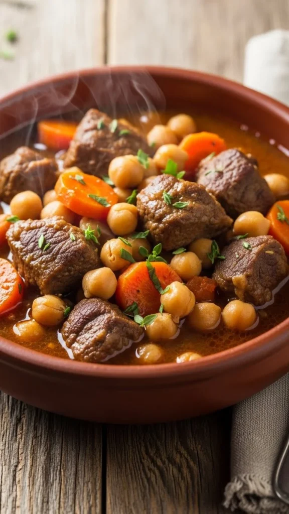Lamb chickpea stew is hearty and warming. Brown lamb, add chickpeas, vegetables, and broth, then simmer slowly. Budget-friendly: canned chickpeas save time and cost. Serve with rice or bread. The combination of lamb and chickpeas makes this protein-rich and filling.