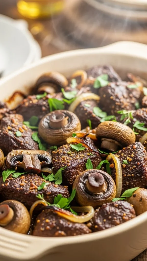 Beef mushroom stew is earthy and savory. Sear beef, add onions, mushrooms, and broth, then slow cook until tender. Budget-friendly: use chuck or stew beef. Serve with mashed potatoes. The slow cooking enhances the meat’s natural flavors, making it a winter staple.