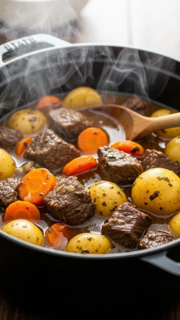 Beef and potato stew is simple and hearty. Brown beef, add potatoes, carrots, onions, and broth, then slow cook until tender. Budget-friendly: use frozen or seasonal vegetables. Serve with crusty bread. This classic stew is warming, filling, and perfect for cold nights.