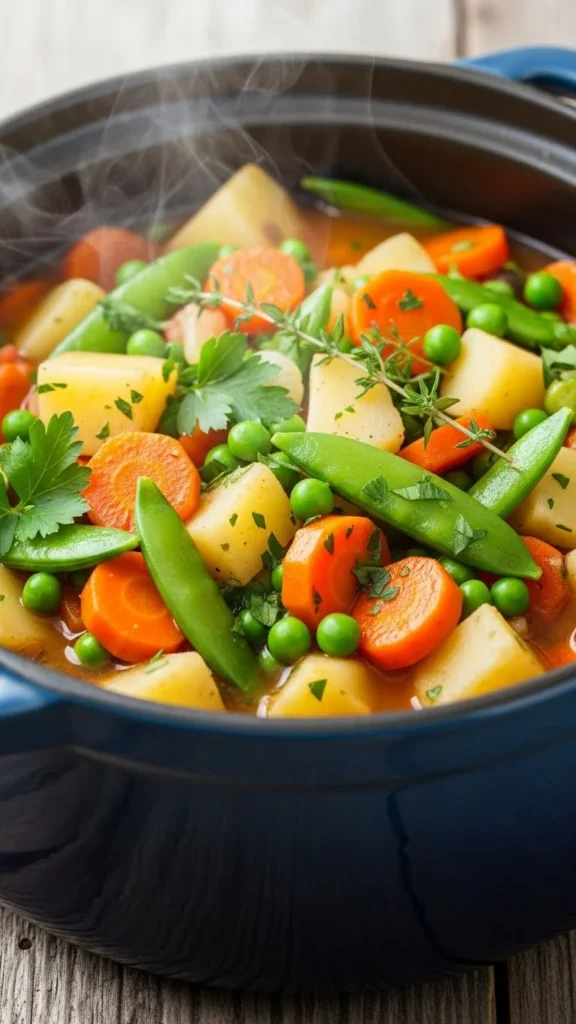 This stew uses whatever vegetables you already have. Potatoes, carrots, and peas work well. Add cabbage or squash if you want more volume. Tomatoes or broth create the base. Add herbs like thyme or rosemary. This stew is budget-friendly and versatile. Serve with rice or bread. Make a large pot and enjoy it throughout the week.