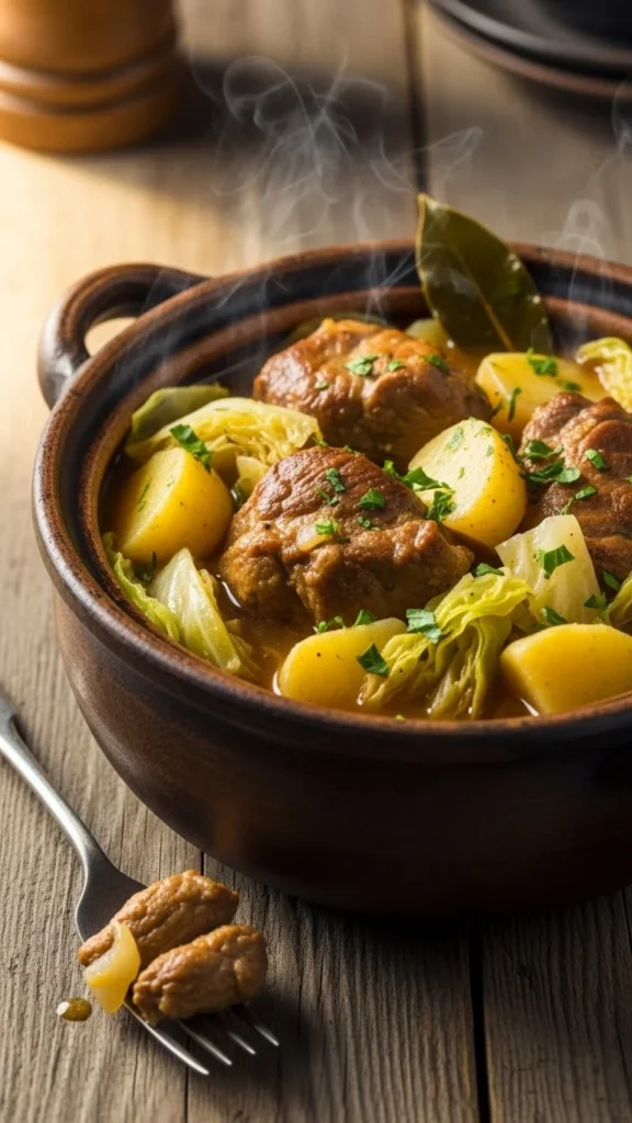 Pork shoulder works beautifully for slow-cooked dishes. Add cabbage, carrots, and potatoes for simple winter flavor. Pork becomes tender after hours of cooking, making this dish comforting and easy. Cabbage is inexpensive and stretches the recipe. Add apple chunks if you want a hint of sweetness. Serve with mustard or crusty bread. This stew also freezes well for future meals. It’s a practical recipe when you want something hearty.
