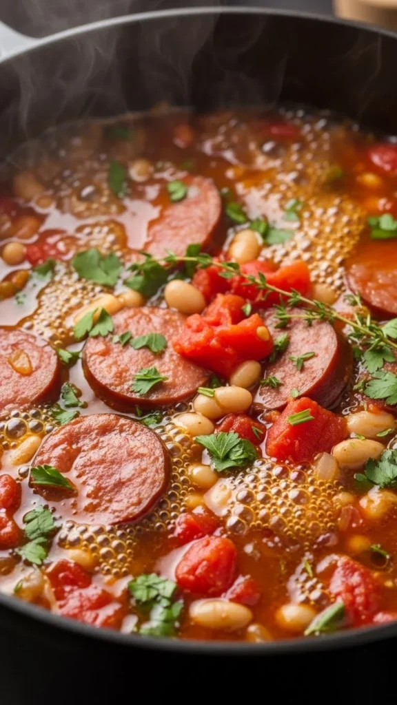 This stew brings bold flavor with very little effort. Use any sausage you like—pork, chicken, or turkey. Add canned beans to keep it simple. Tomatoes provide acidity that balances everything. If you’re on a budget, cut the sausage into smaller slices so it stretches further. Add kale for extra color. Serve with rice or bread for a full meal. Make two batches because leftovers taste even better.
