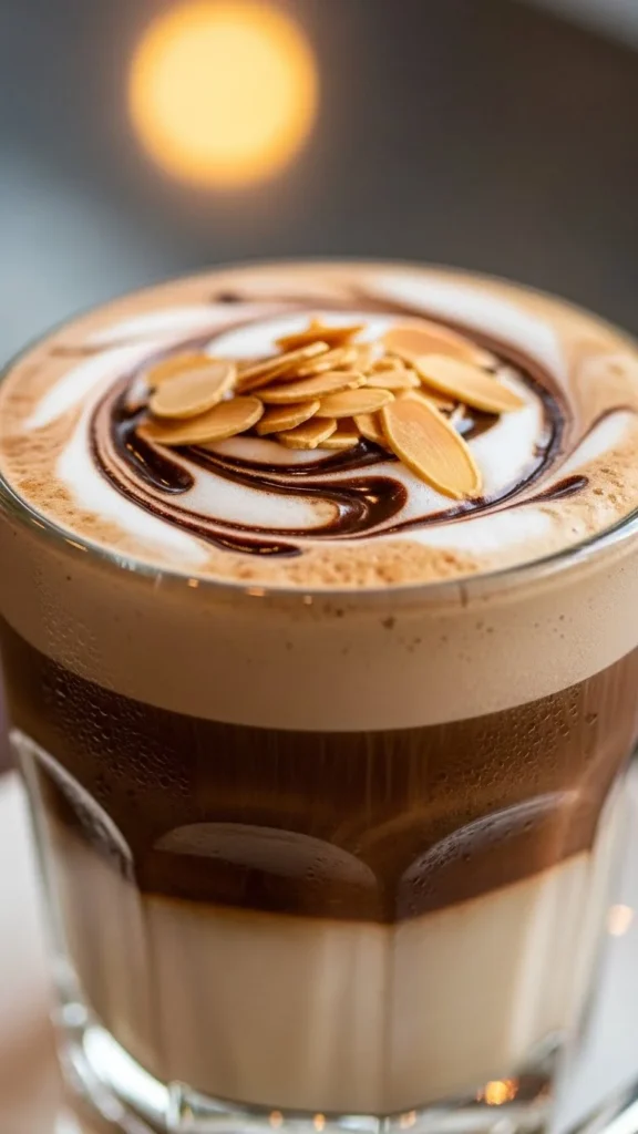 Mix coffee, cocoa powder, and warm almond milk. Top with whipped cream and almonds. Budget-friendly: use store-bought almond milk. This mocha is creamy, nutty, and perfect for chilly mornings.