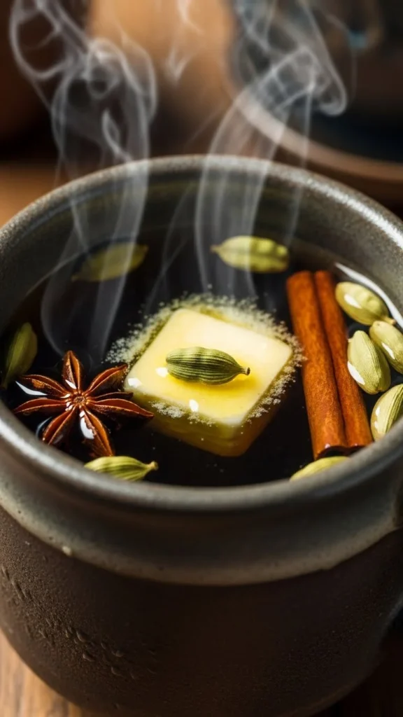 Simmer black tea with spices like cardamom, cinnamon, and cloves. Add milk and sugar. Budget tip: make chai mix at home. This spiced drink is warming, fragrant, and comforting.