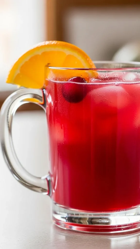 Simmer cranberry juice, orange slices, and cinnamon sticks. Budget tip: use frozen cranberries. This drink is tart, warming, and festive.