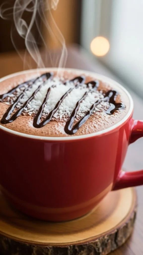 Mix cocoa, milk, coconut extract, and chocolate syrup. Budget-friendly: shredded coconut is cheap. This drink is nutty, sweet, and creamy.