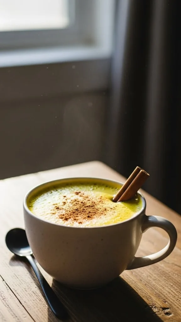 Simmer milk with turmeric, cinnamon, and honey. Budget tip: use ground turmeric. This anti-inflammatory drink is warm, fragrant, and soothing.