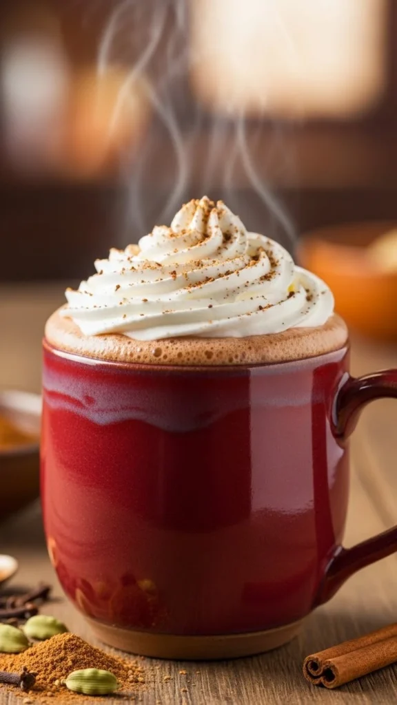 Mix cocoa and chai spices in hot milk. Budget-friendly: use homemade chai spice blend. This fusion drink is rich, spicy, and warming.